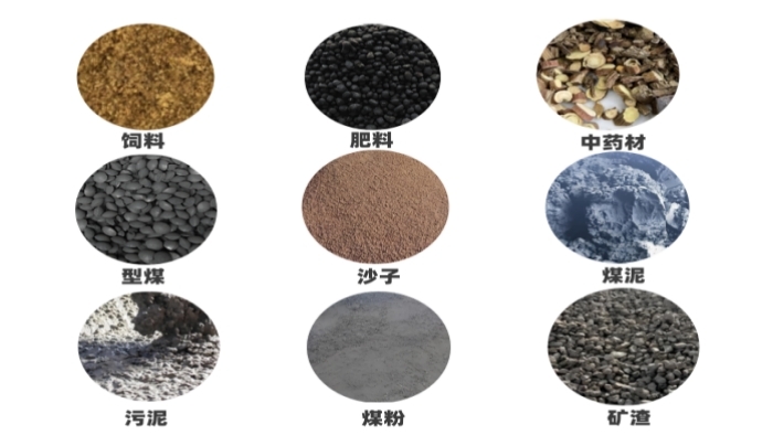 3、烘干湿度和粒度范围内颗粒物料,效率好,如黄砂、型砂、矿渣,煤渣、小粒度粘土。